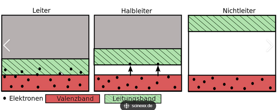 Es gibt einen Valenzband & ein Leitungsband → diese Überlappen