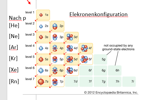 Innerhalb einer Periode nimmt die Zahl der Außenelektronen (Valenzelektronen) von links nach rechts zu (mit einigen Ausnahmen).