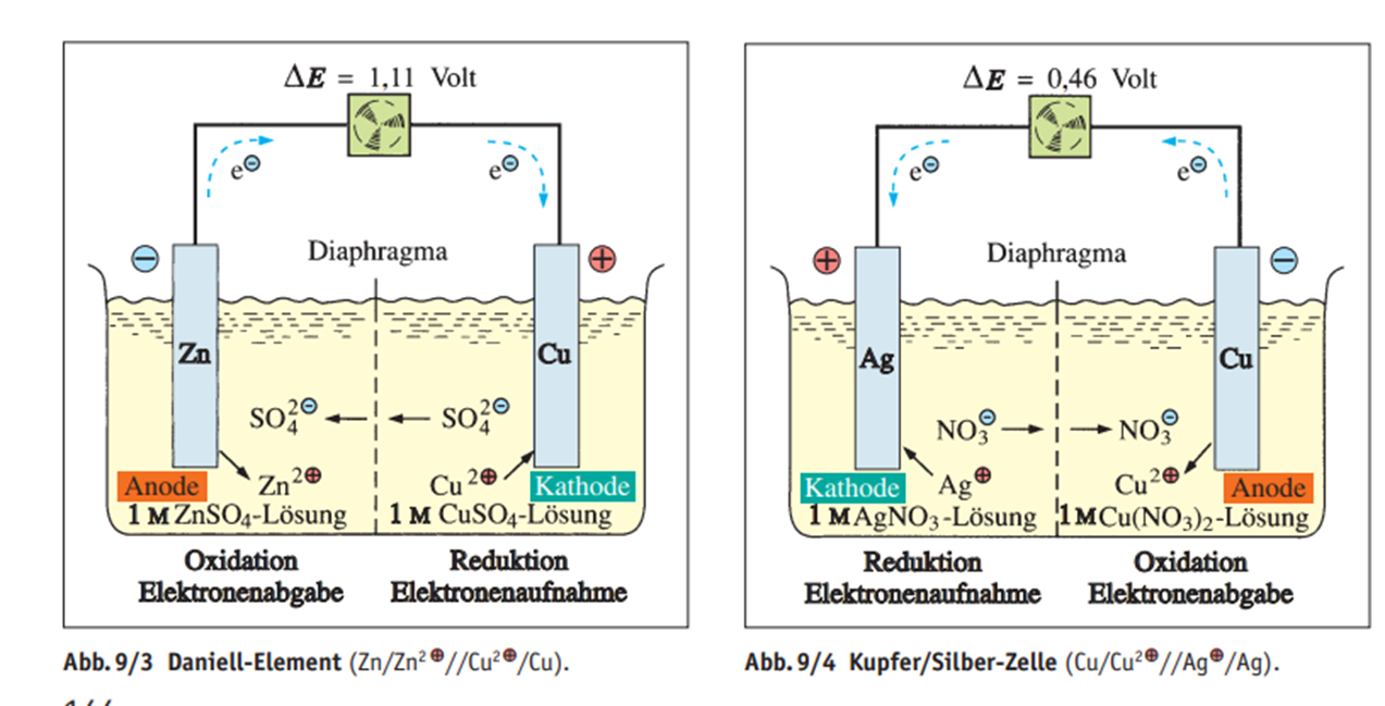 - Bestehen aus zwei Halbzellen, in denen Oxidation und Reduktion getrennt stattfinden.
