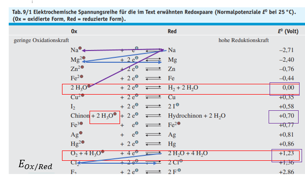 Elektronenübergabe immer gekoppelt : Ein Partner oxodiert, der andere reduziert.